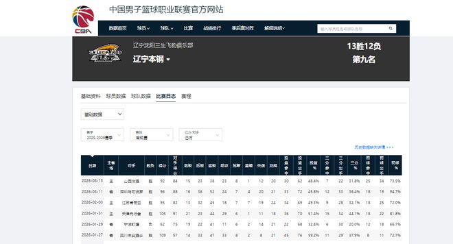 - 2026年03月13日 广东力克深圳止三连败 萨林杰25+6 萨姆纳20+5 贺希宁16+7