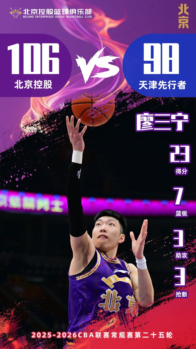 3月13日,北控男篮坐镇国家体育馆对阵天津先行者。经过四节角逐,北控凭借稳定的攻防表现、高效的团队配合,以106:98赢下比赛。本场比赛既体现了全队状态进一步回暖,也展现了球队本土核心与外援之间的默契配合。此役,北控展现出极强的团队战斗力,三人砍下20+为胜利奠定了基础。