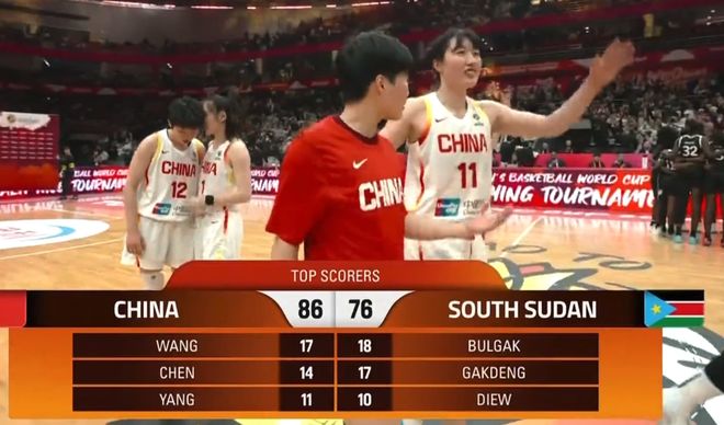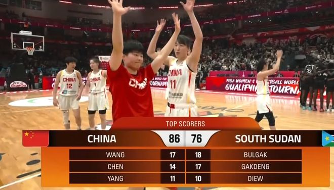- 中国女篮86比76战胜南苏丹女篮,再赢一场就能确保晋级世界杯