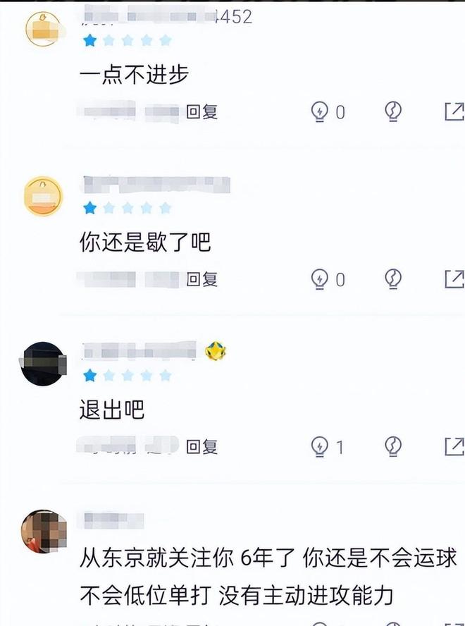 “光漂亮有啥用?上去溜达一圈送3分?”“6分钟3失误,这是职业球员?”“大空位都不敢投,要不咱退了吧?”,各种负面评论纷至沓来。