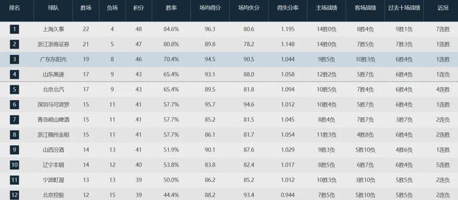 此役过后,广东队以19胜8负继续排名联盟第三,仅次于上海队(22-4)和卫冕冠军广厦队(21-5)。