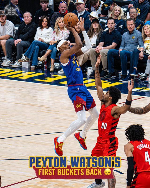 掘金:约基奇22分14板14助2断、穆雷22分2板7助、约翰逊19分2板3助2断、布劳恩15分6板2助、沃特森14分6板3助、布朗13分3板3助、戈登12分3板4助。