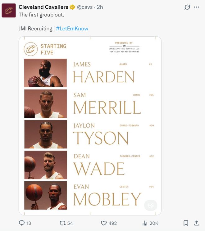 这场比赛多诺万-米切尔因为眼部的伤势缺席,哈登与莫布利带队,阿伦依旧在伤病名单上。