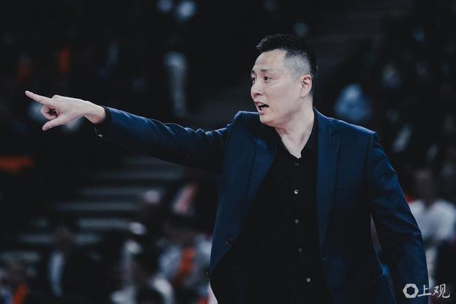上海男篮主帅卢伟在场边指挥