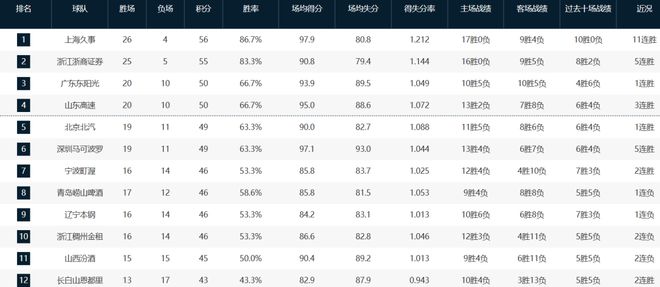 - CBA积分榜一夜大变:上海11连胜,辽宁遭爆冷,广东送四川30连败