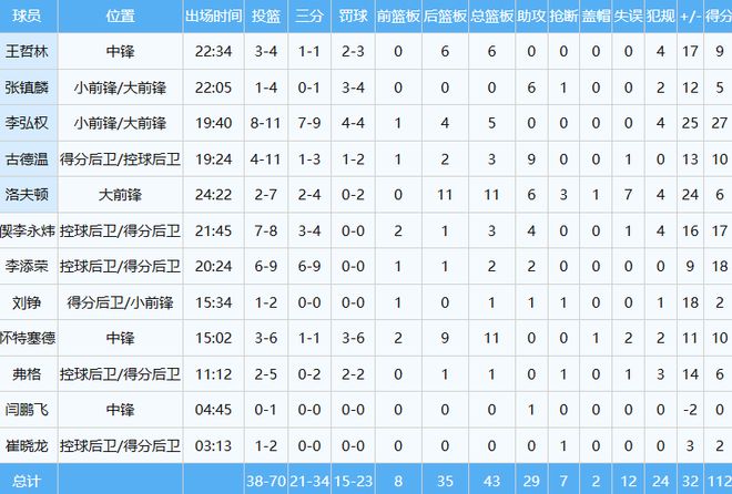 李弘权毫无疑问是此役最靓的仔,首发出战不到20分钟,就投篮11中8,其中三分球9中7贡献27分外加5板,正负值+25冠绝全场,把对手锤到生活不能自理。