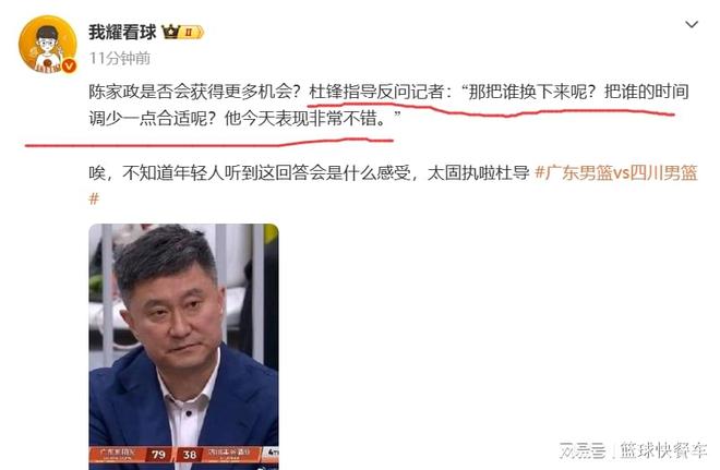 - 广东球迷怒了!记者:陈家政是否获更多机会?杜锋:把谁换下?