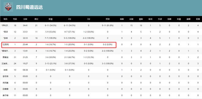 而四川队的国手王思雨此役26分钟,6中1+三分1中0+罚球2中0拿2分6助攻2失误,换言之王思雨与张茹都是6中1也都只有一个运动战进球,可王思雨丢了关键两罚,张茹却准绝杀了。