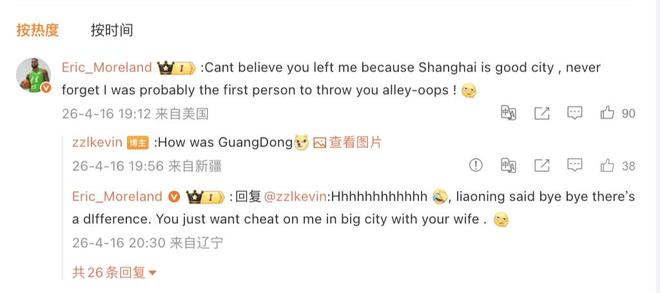 北京时间4月17日,辽宁队大外援莫兰德在社交媒体与上海队球员张镇麟互动,针对都曾离开过辽宁队一事两人互相打趣。