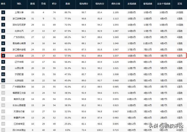 - 上海21连胜高居榜首,黑马第3,广东又掉出前4,山东第8,辽宁第9