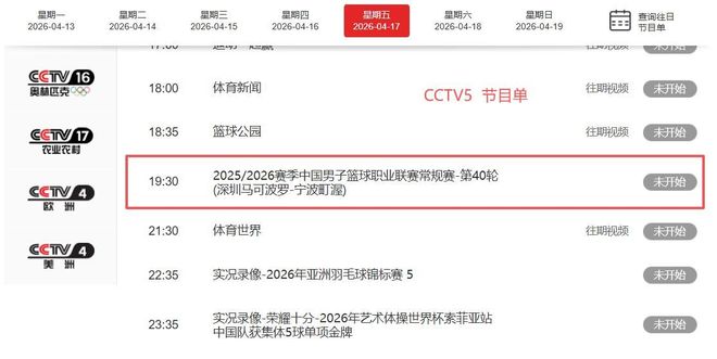 - 2026年04月17日CBA常规赛 深圳 - 宁波 全场录像