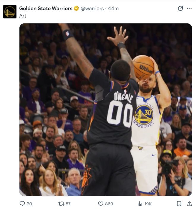 次节库里命中第一个三分球,随后库里助攻桑托斯上篮将分差缩小到5分。太阳的防守没有衔接上,第二节勇士太多的轻松空切得分,太阳首节防守端体能消耗过大,外线三分也不准了,库里两罚命中缩小到2分,库里半场6中2拿到7分4篮板3助攻2抢断。
