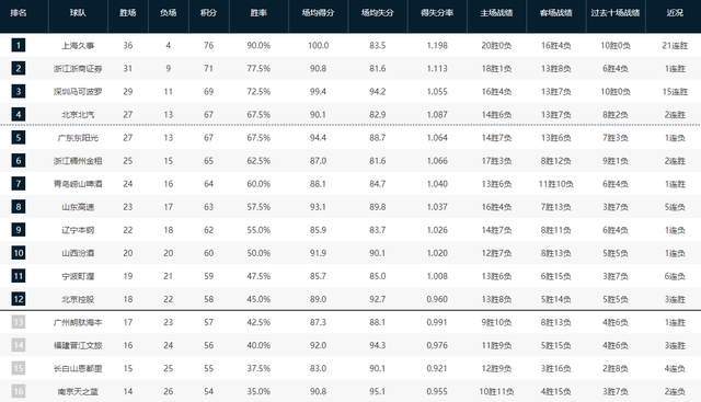 CBA排名又乱了!广东爆冷输球,北京杀回前4,3队争抢最后2个席位
