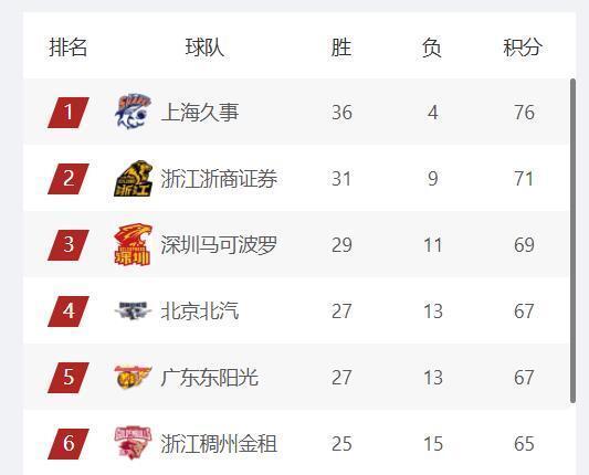 - CBA最新排名,上海、广厦前2,广东跌至第5,辽宁无缘前8