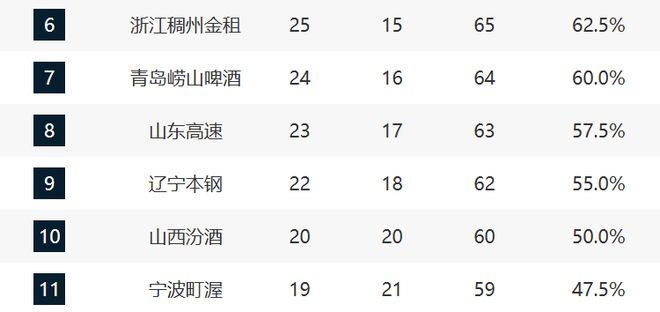 山西这轮惜败江苏,这算是冷门了,还是维持第十的位置。并且他们领先六连败的宁波也就一个胜场,但他们的稳定性都不是很强,排名依然不够固定。
