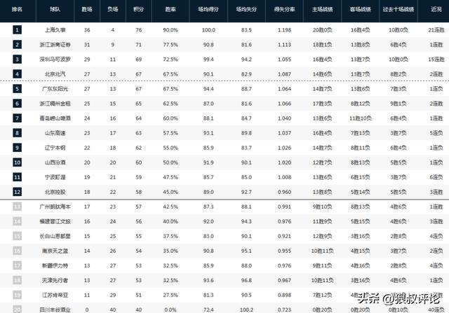- CBA最新排名,上海、广厦前2,广东跌至第5,辽宁无缘前8