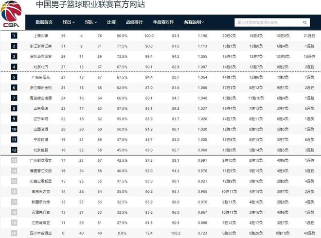 - CBA最新排名:广东离奇输球神助攻北京 辽宁不敌浙江跌出前8