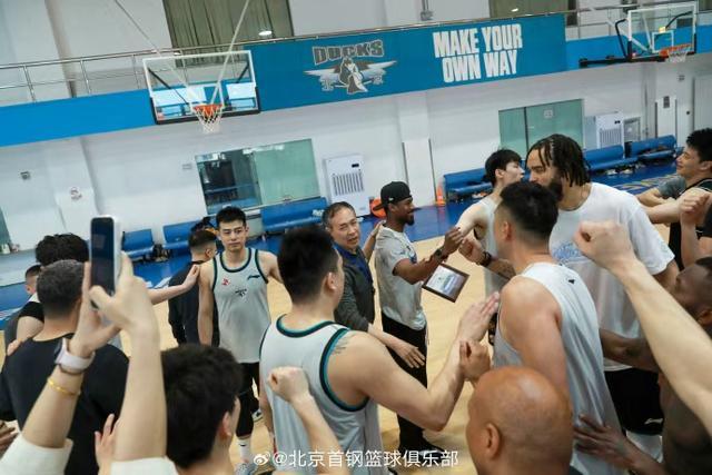 许利民送给贝利北汽男篮的全家福照片作为离别礼物。而贝利也与教练、队友们相互拥抱,就此作别。