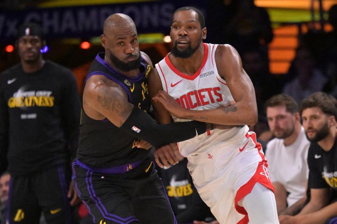 杜兰特不持球,发挥不了他的威力;他只要持球,失误不断,把全队节奏都打乱了。数据不说谎,火箭季后赛场均96分倒数第二,三分球命中率29%倒数第一,两分球命中率39%倒数第二,场均只进9.0记三分球,联盟垫底,这个进攻效率,根本威胁不到湖人。关键是在东契奇和里夫斯养伤期间,湖人季后赛的增量太多了!詹姆斯场均23.5分8篮板10助攻,肯纳德场均25分5篮板2.5助攻,三分球命中率72.7%;斯玛特场均20分7.5助攻3抢断,三分球命中率50%;包括艾顿,都在申京这里找到自信,场均12.5分8篮板。