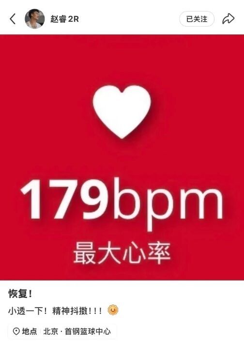 除了新外援威廉姆斯的状态出色外,北京男篮还有另外一个好消息,那就是赵睿的伤病已经没有大碍了。据赵睿本人在社交媒体上刚刚发布的消息,他的情况可以用“精神抖擞”四个字形容。随后北京媒体透露,赵睿的伤病情况有了很大好转,已经开始进行恢复训练了。不过由于赵睿的伤病还没有彻底痊愈,目前也只是能够进行一些单独训练,还不能和球队一起进行对抗训练。不过整体来看的话,赵睿应该是能够在季后赛复出的。