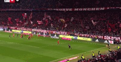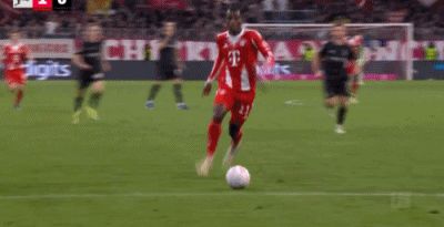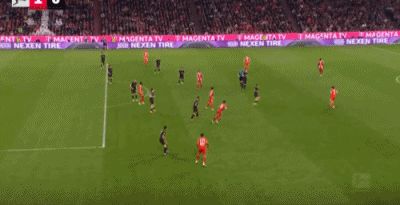 第32分钟,格雷茨卡挑传,迪亚斯凌空抽射破门,拜仁1-0门兴