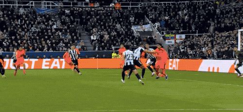 随后纽卡继续强攻,第86分钟,乔林顿在右路送出传中,巴萨防线出现漏人,巴恩斯门前包抄射门踢疵,但距离太近,加西亚虽然扑了一下,依旧无法阻止皮球入网,纽卡1-0领先,圣詹姆斯公园瞬间沸腾。