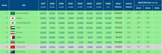 - 0.3分优势!中超力压澳超保住3个亚冠席位 目前位列东亚区第4
