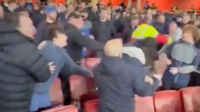 埃弗顿前锋蒂耶尔诺・巴里在社交媒体上发布了一段视频,视频显示在客场不敌阿森纳的比赛中,客队看台上的埃弗顿球迷之间发生了冲突,随后他公开指责了自家球迷。