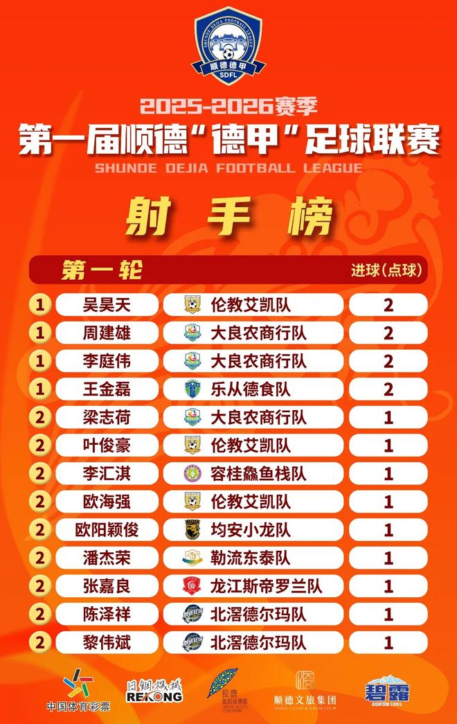 威水!顺德“德甲”循环赛第一轮积分榜、射手榜来了