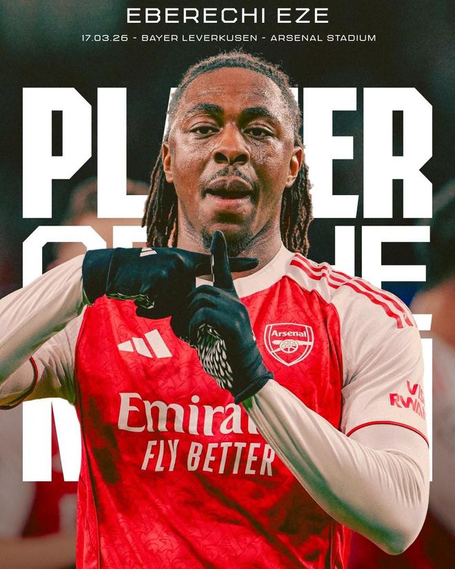 - 世界波破门,阿森纳官方:埃泽当选对阵勒沃库森一役队内最佳