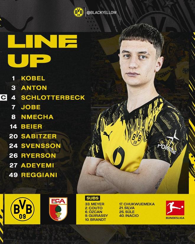 - 多特vs奥格斯堡:小贝林厄姆首发,阿德耶米、拜尔出战