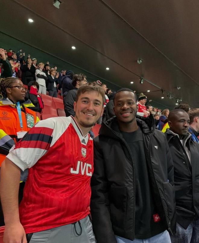24岁的瓦塔拉混在阿森纳球迷中,坐在上层看台观看了枪手2-0击败勒沃库森的比赛。