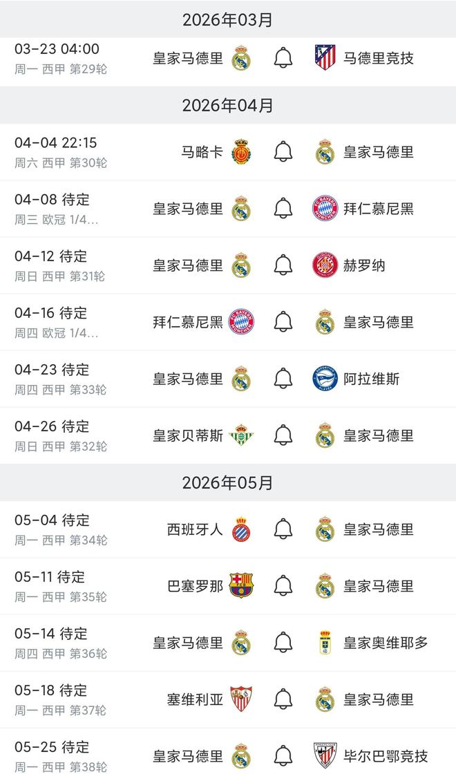 皇马未来赛程