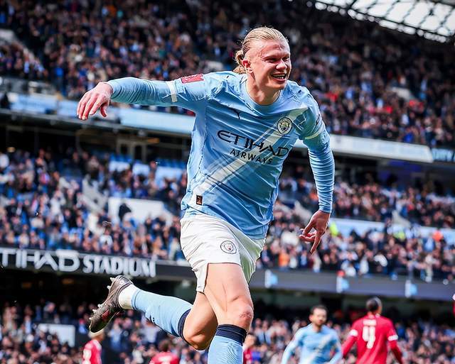 4月4日,足总杯1/4决赛,曼城vs利物浦。利物浦场面占优,但萨拉赫丢单刀,埃基蒂克接连错失机会。第37分钟,范戴克防守过于冒失送上点球,哈兰德一蹴而就,连续4个主场攻破利物浦大门,成为近9年来曼城第1人。短短8分钟,哈兰德上演梅开二度好戏。