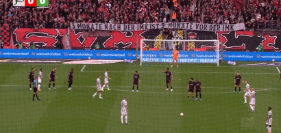 第13分钟,瓦夫罗任意球射门,皮球打偏
