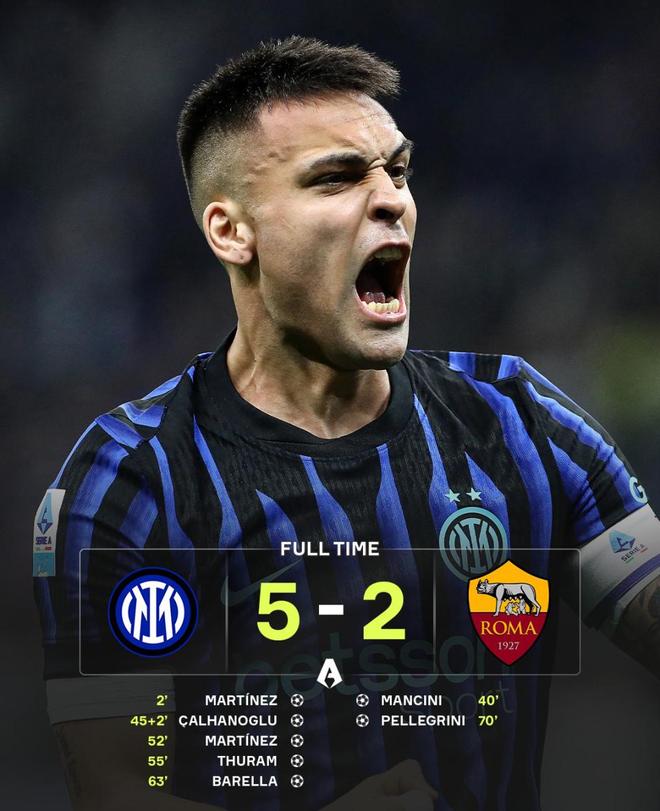 - 【意甲】国际米兰5比2罗马,劳塔罗双响