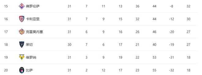 - 意甲:亚特兰大客场表现不佳,莱切能否逃离降级区域?