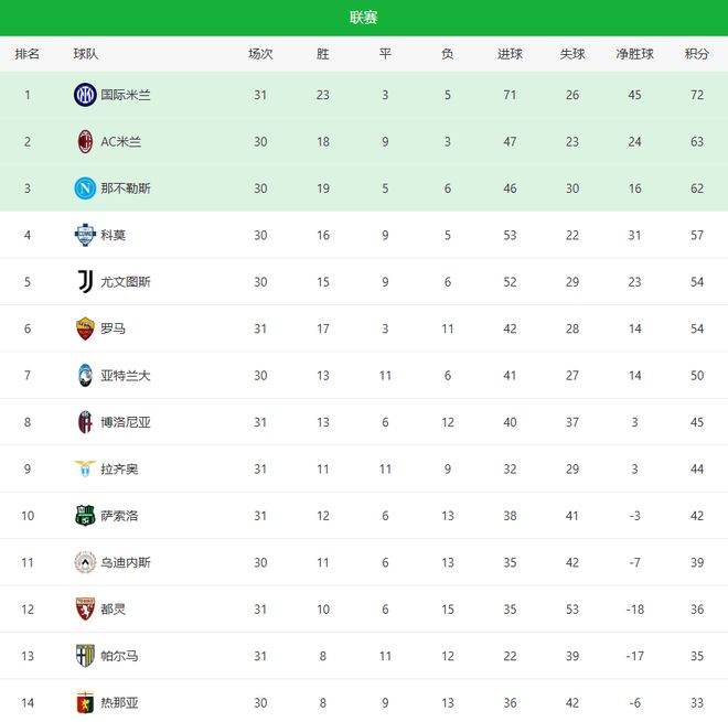 随着国米5-2双杀罗马+都灵1-0!意甲最新积分榜:2-6名差8分