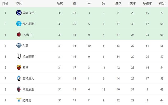 - 随着国米5-2双杀罗马+都灵1-0!意甲最新积分榜:2-6名差8分