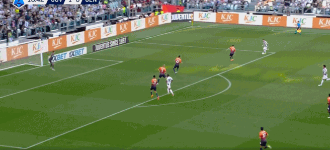 第4分钟,伊尔迪兹左路传中,皮球被顶出来,弧顶位置凯夫伦·图拉姆头球一点,凯利头球接力,布雷默门前第三次头球接力将球打进,尤文图斯1比0领先热那亚。