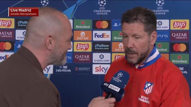 在欧冠1/4决赛次回合主场迎战巴塞罗那的比赛前夕,马德里竞技主教练西蒙尼接受了来自意大利天空体育名记迪马济奥的采访。