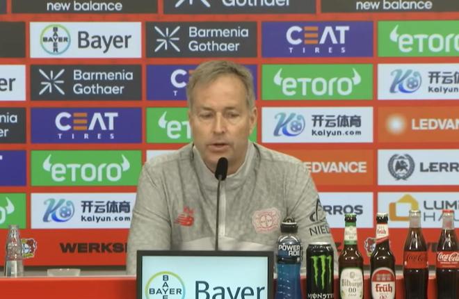 北京时间4月11日,德甲第29轮,多特蒙德将对阵勒沃库森。赛前,勒沃库森主教练尤尔曼德出席了发布会。