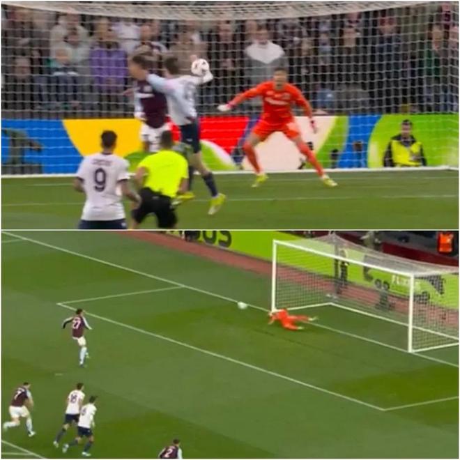 真正的崩溃从第26分钟开始。VAR介入,认定维蒂克手球,点球。罗杰斯主罚,拉瓦利亚扑对方向,球被挡出。但欢呼声还没落,迪涅的界外球直接扔进禁区,布恩迪亚停球、转身、爆射,整个过程不到3秒。拉瓦利亚指尖蹭到皮球,无力阻止入网。