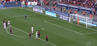 第90+7分钟,奥贡杜造点,法比安-里德点射破门,奥格斯堡2-1勒沃库森