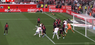 第12分钟,塔普索巴传中,希克头球破门,勒沃库森1-0领先奥格斯堡