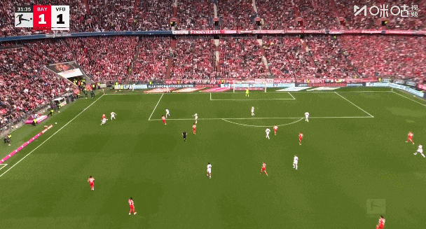 第31分钟,穆西亚拉左路强突后横扫门前,格雷罗包抄打空门得手,拜仁1比1追平比分!