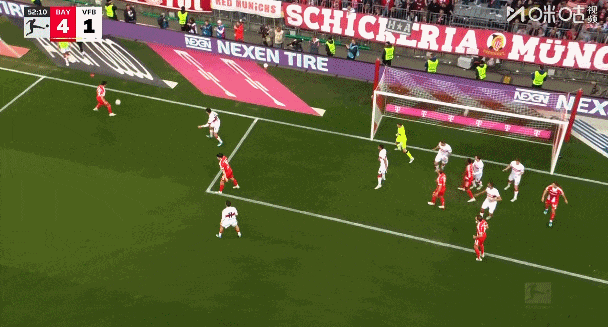 易边再战,第52分钟格雷茨卡打门被扑,下半场替补出场的凯恩补射扩大比分!拜仁4比1领先!